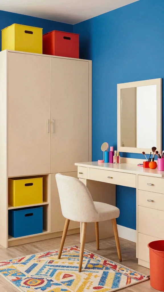 For instance, a bright blue cabinet against warm beige walls can introduce excitement without overwhelming the senses. Colorful storage bins can also add a playful touch while serving practical purposes.