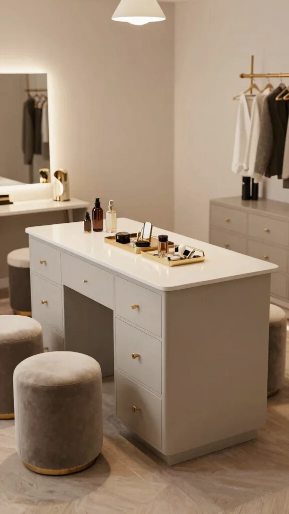 Select furniture pieces that serve multiple functions, maximizing space while adding style to your dressing room.