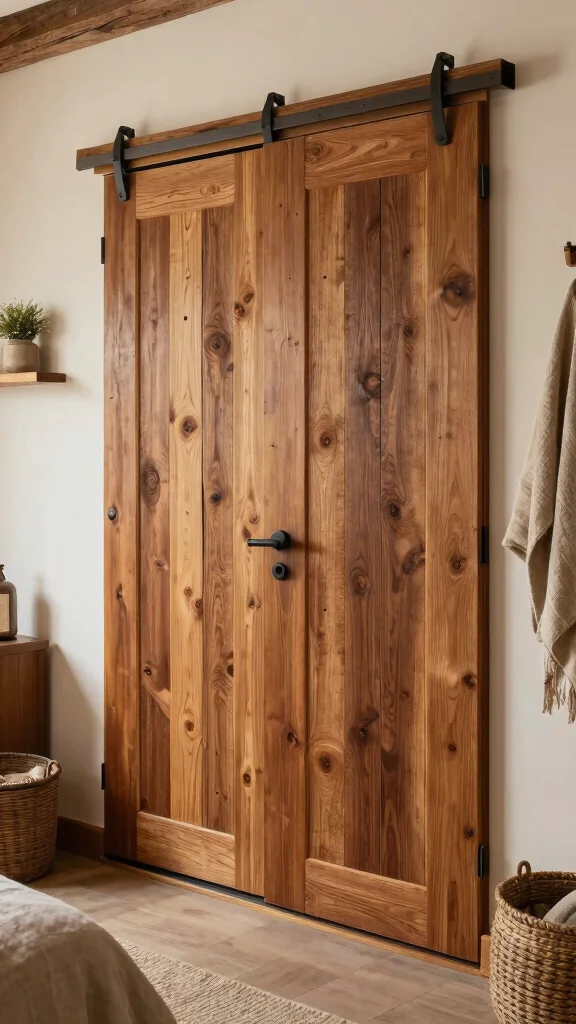 Introduce warmth and charm to your dressing room with rustic sliding doors. These doors beautifully combine functionality with style, creating a cozy atmosphere that invites you in. A wooden finish can enhance the space and complement various decor styles, making your entrance feel welcoming.
