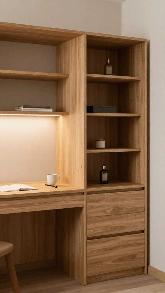This setup not only saves space but also enhances the flow of your room. Use decorative boxes or stylish trays to keep essentials organized and easily accessible, ensuring a clutter-free environment.