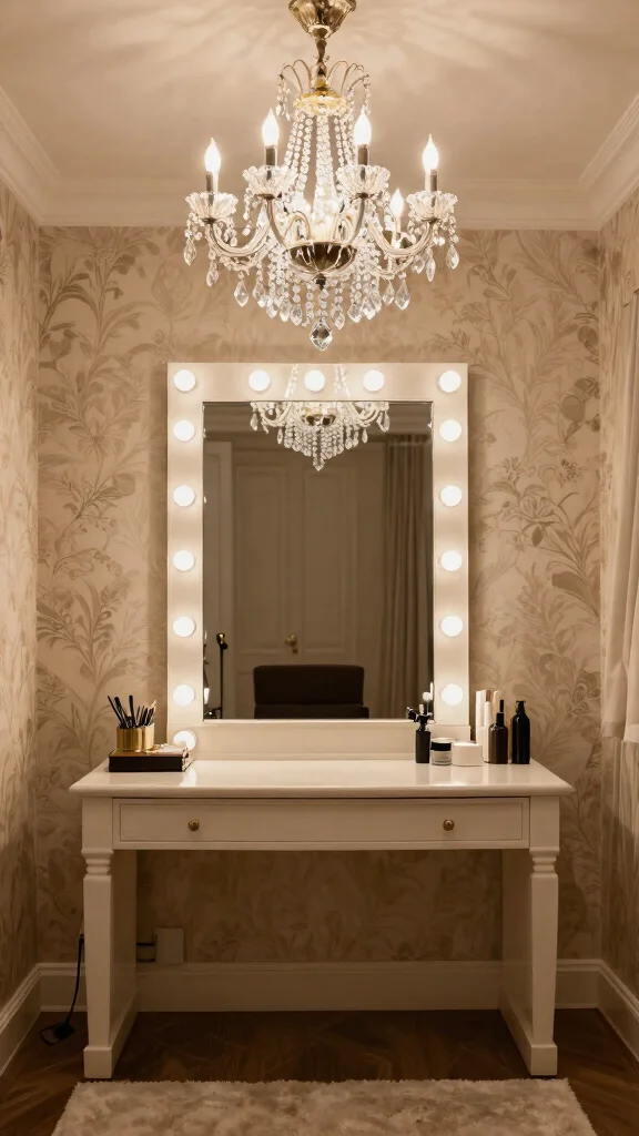 This approach not only makes a statement but also enhances the overall atmosphere, ensuring your dressing room is both functional and stylish.