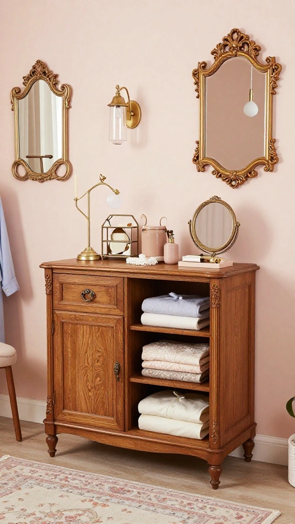 Pair vintage elements with contemporary features, such as sleek mirrors or modern lighting, to create a stylish contrast. This thoughtful mix not only enhances visual interest but also allows you to express your personality within the space.