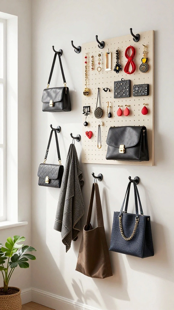 Fun fact: Up to 60% of closet clutter sits on the floor. Wall-mounted hooks and racks free vertical space, turning dressing room layout ideas into reality—organizing coats, bags, and jewelry in minutes.