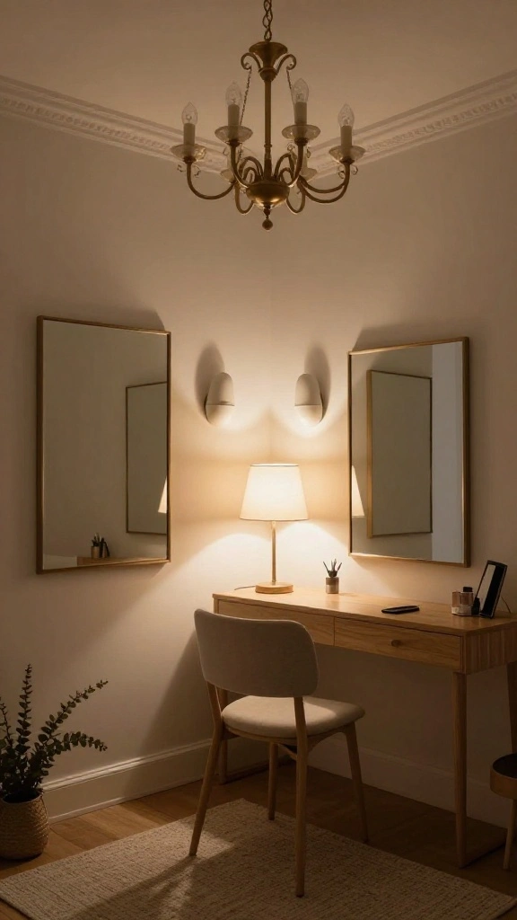 Which lighting and mirror strategies help a small dressing room feel brighter and bigger?