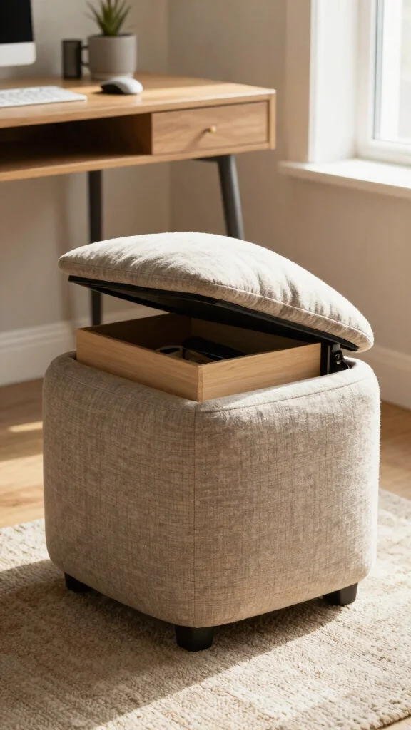 Consider multipurpose ottomans as a clever solution for compact spaces, blending storage with seating or footrests. Choose an ottoman with a lid that opens to reveal hidden space for stashing office supplies or clothing, keeping your area organized.