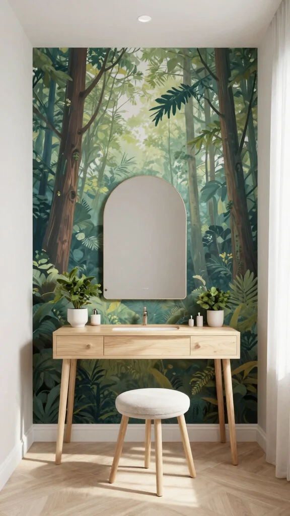 This option allows for creative expression, ensuring your dressing room reflects your individuality. To maintain focus on the mural, pair it with simple, understated furniture.