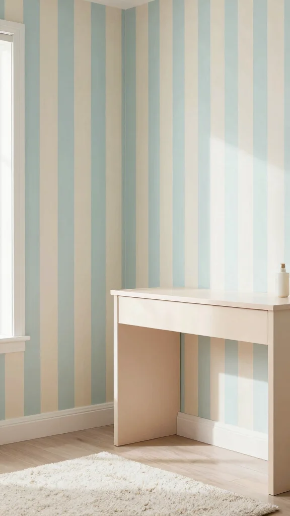Stripes are a classic design choice that can work wonders in your dressing room. Vertical stripes can create an illusion of height, while horizontal stripes can make the space feel wider. Choose eco-friendly striped wallpaper in colors that reflect your personal style, from bold contrasts to soft pastels.