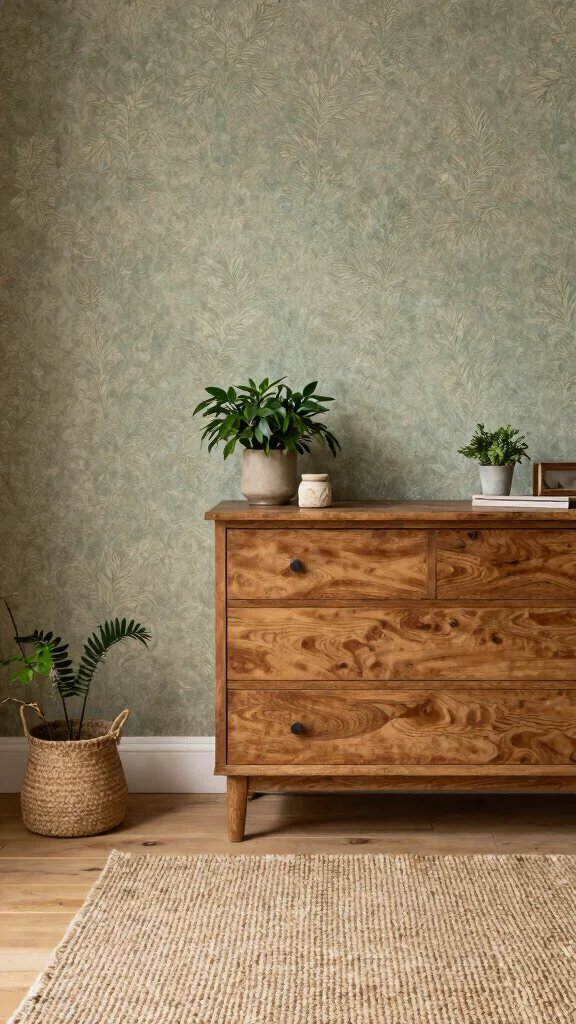 Pair these textured wallpapers with wooden accents and soft fabrics to amplify the organic vibe. Elements like wicker baskets or greenery can further complement the natural theme.