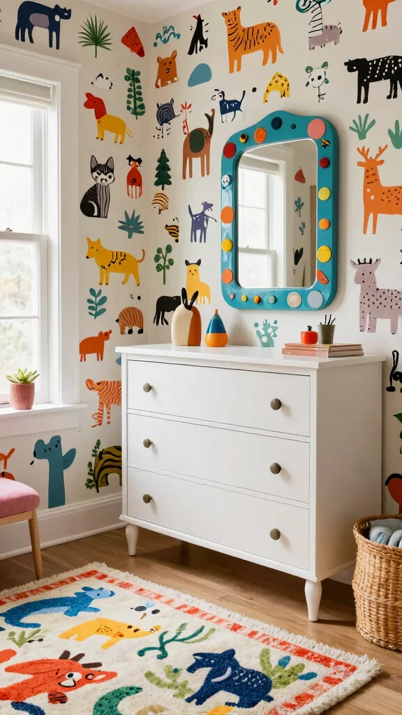 To maintain balance and prevent clutter, pair whimsical wallpaper with sleek, modern furniture. Light-colored furnishings can help keep the energy lively without overwhelming the space.