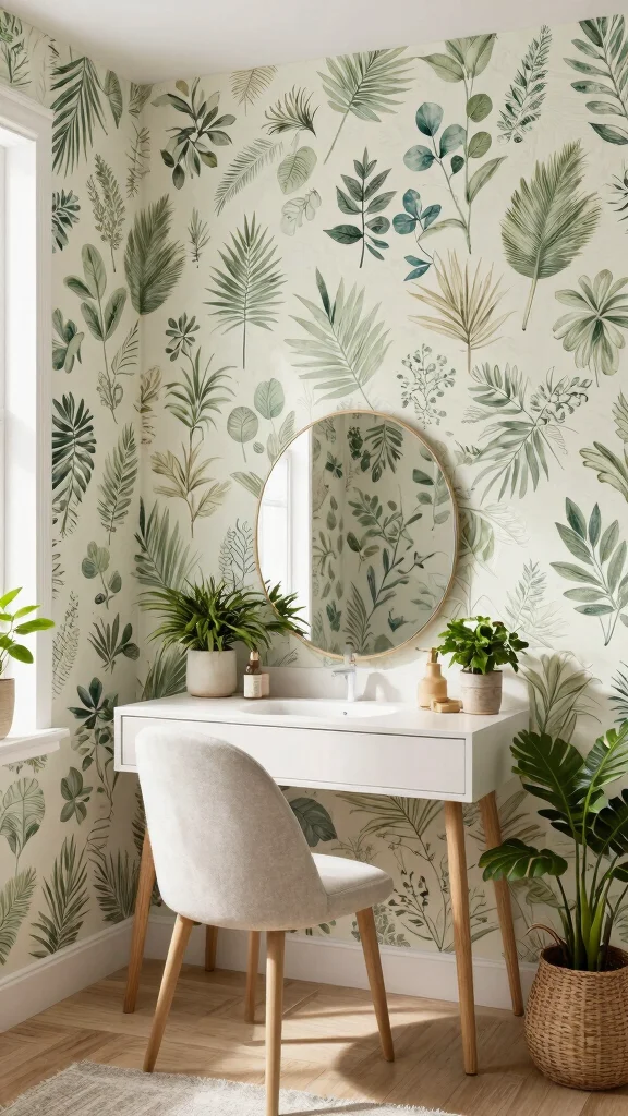 Opt for wallpapers made with natural dyes and organic materials to ensure your choice is environmentally friendly. These colors work beautifully with wooden furnishings and indoor plants, creating a harmonious space for your dressing rituals.
