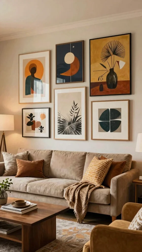 An eclectic gallery wall reflects your personality and invites exploration, encouraging guests to engage visually with your unique space.