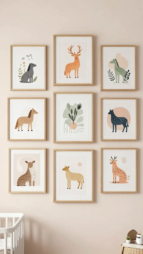 Seek pieces that reflect your personal style—whether whimsical animal prints, abstract designs, or tranquil landscapes. Opt for sustainable materials in your art, like bamboo frames or recycled paper prints. Curating a gallery wall adds a personal touch and can showcase your family’s story. Pair larger pieces with smaller ones for an eclectic yet cohesive look.