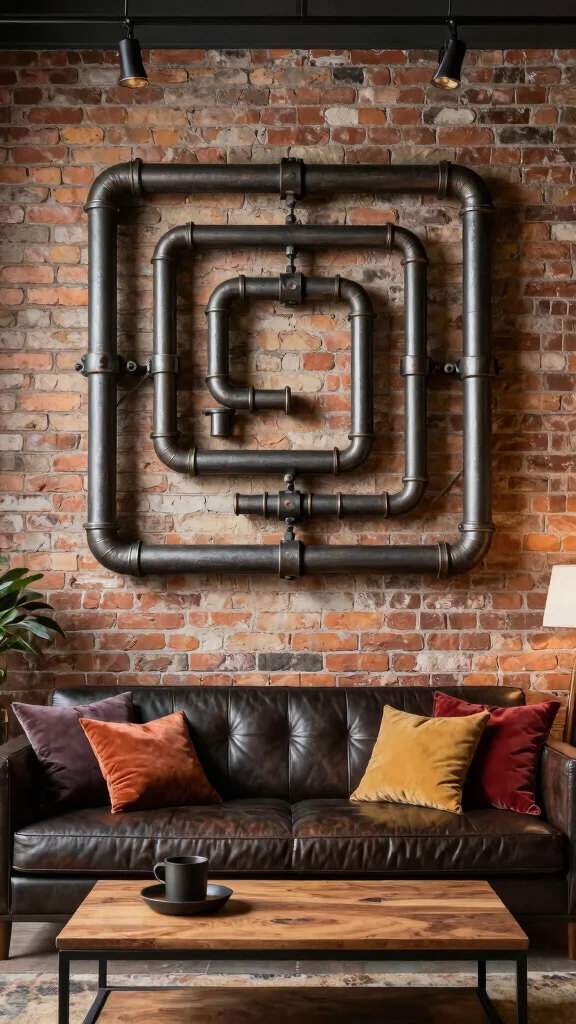 What are the best metal wall art ideas to create industrial charm in a living room?