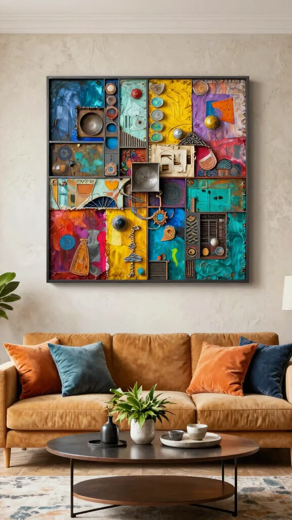 Abstract metal art panels can transform your living room into a vibrant space full of personality and flair. These striking pieces often showcase a mix of textures and colors, providing a unique visual experience that can energize your decor. Imagine hanging a large abstract panel over a sectional sofa; it instantly draws the eye and adds depth to your living area.