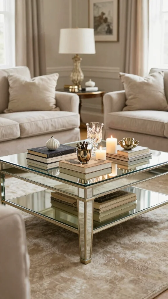 Choose a style that complements your decor, whether sleek and modern or vintage and ornate. To add a vibrant touch, incorporate colorful accessories that contrast beautifully against the reflective surfaces.
