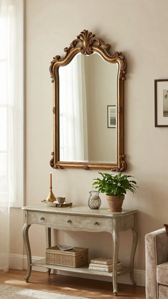 Transform your living room with ornate vintage mirrors that exude sophistication and timeless appeal. Featuring intricate carvings and embellishments, these mirrors can instantly elevate your decor, making them perfect focal points. An elaborately framed mirror above a mantle or in a hallway can create a stunning visual that captures attention.