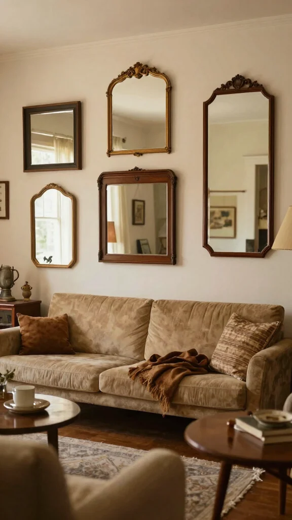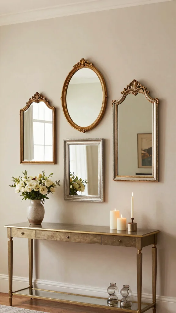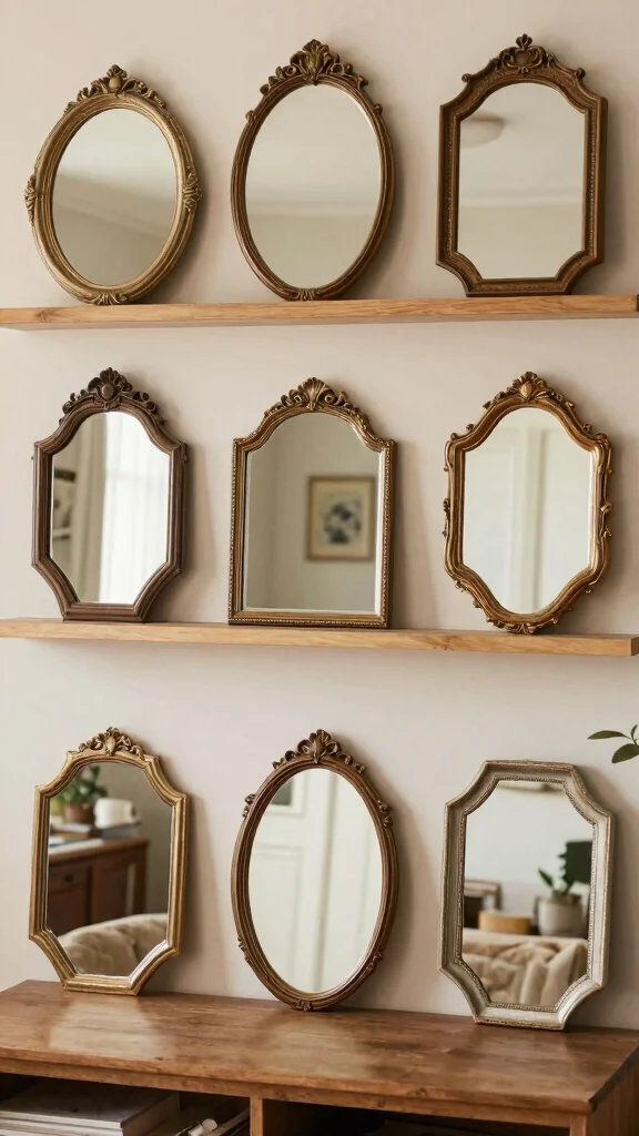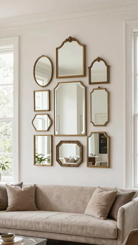 Arrange vintage mirror clusters on a wall to amplify light reflection and add a dynamic touch to the decor.