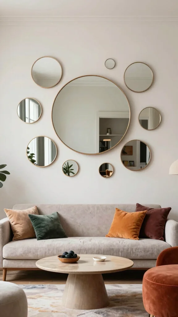 Layering multiple smaller circular mirrors creates a lively, dynamic display that invites conversation. Experimenting with painted frames or unique finishes allows you to showcase your personal style.