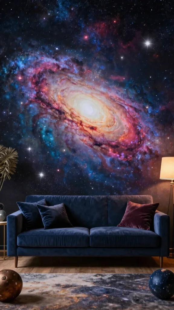 A cosmic mural inspires wonder and curiosity, turning your living room into a magical haven.