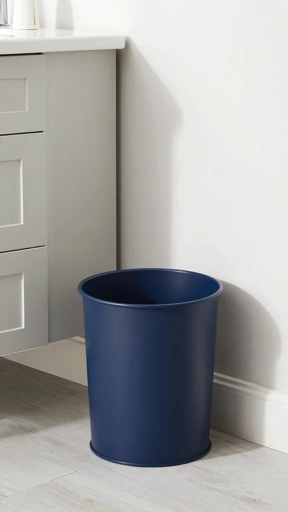 An elegant wastebasket in navy blue is both a practical and stylish addition to your bathroom. Look for designs that feature appealing textures or details that align with your coastal theme, helping to keep your space tidy while adding a pop of color.
