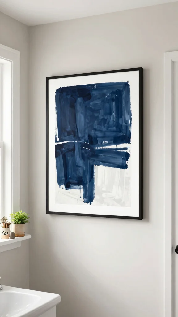 Adding artistic wall art in navy blue can give your bathroom walls a personal touch. Seek out pieces that reflect coastal themes, such as ocean waves or sailboats, to create a serene atmosphere. These artworks can perfectly complement your decor while infusing a sense of tranquility into the space.