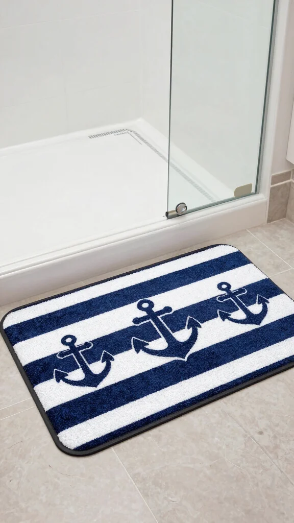 A nautical-themed shower mat in navy blue is an excellent addition for that coastal touch. Designs featuring anchors or ocean waves serve as a visual anchor for your decor while providing practical benefits like keeping your bathroom dry. This piece can seamlessly tie your entire look together.