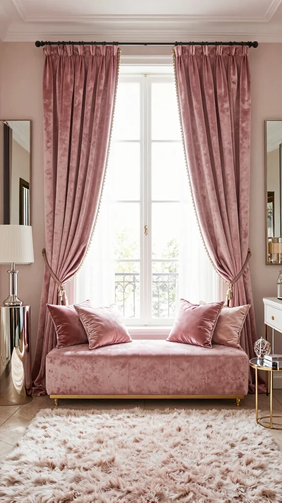 Incorporating luxurious textures can elevate your pink dressing room, making it feel more inviting and sophisticated. Think velvet curtains, silk cushion covers, and a soft shag rug to introduce warmth and comfort. Layering various textures invites visual interest and enhances the cozy atmosphere.
