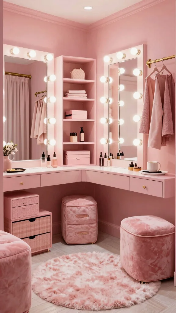 Crafting a pink dressing room that’s both chic and feminine is all about blending style with personal touches.