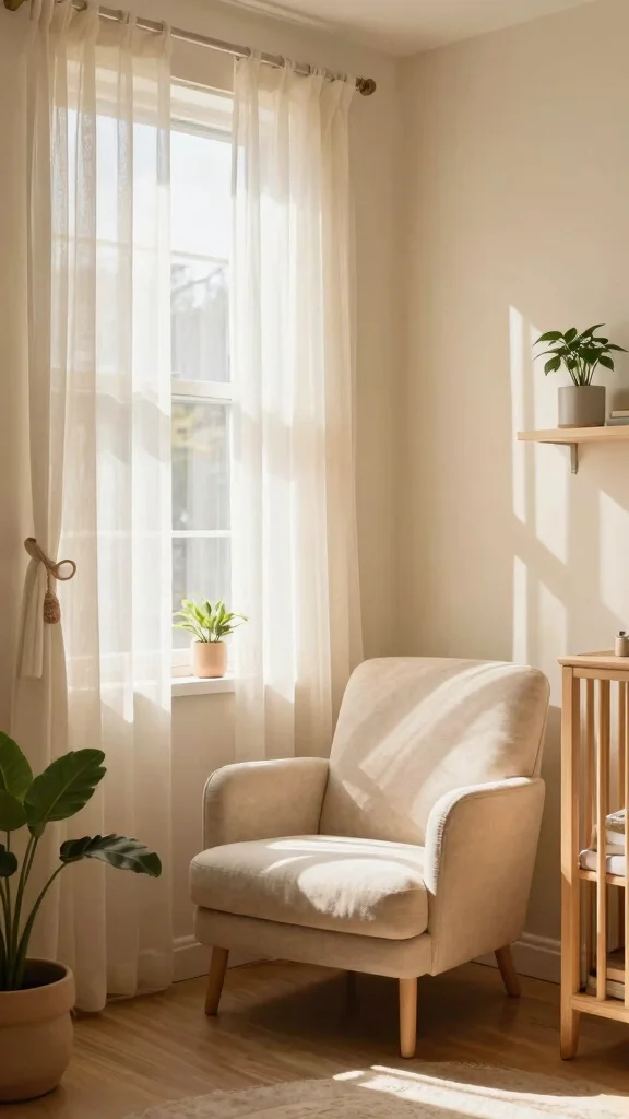 Choose organic materials like linen or wood for lampshades, and consider dimmer switches to adjust brightness throughout the day. Night lights made from natural materials provide a gentle glow for nighttime feedings.
