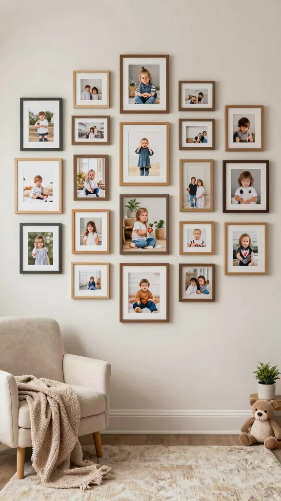 Consider a decorative gallery wall showcasing family milestones, special moments, or your baby’s growth. This personal flair makes your space unique and delightful for both you and your little one.
