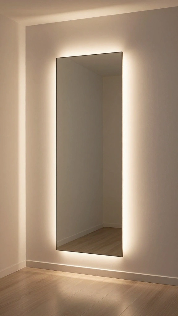 Enhance the effect by surrounding your mirror with soft lighting, creating a warm, inviting ambiance.