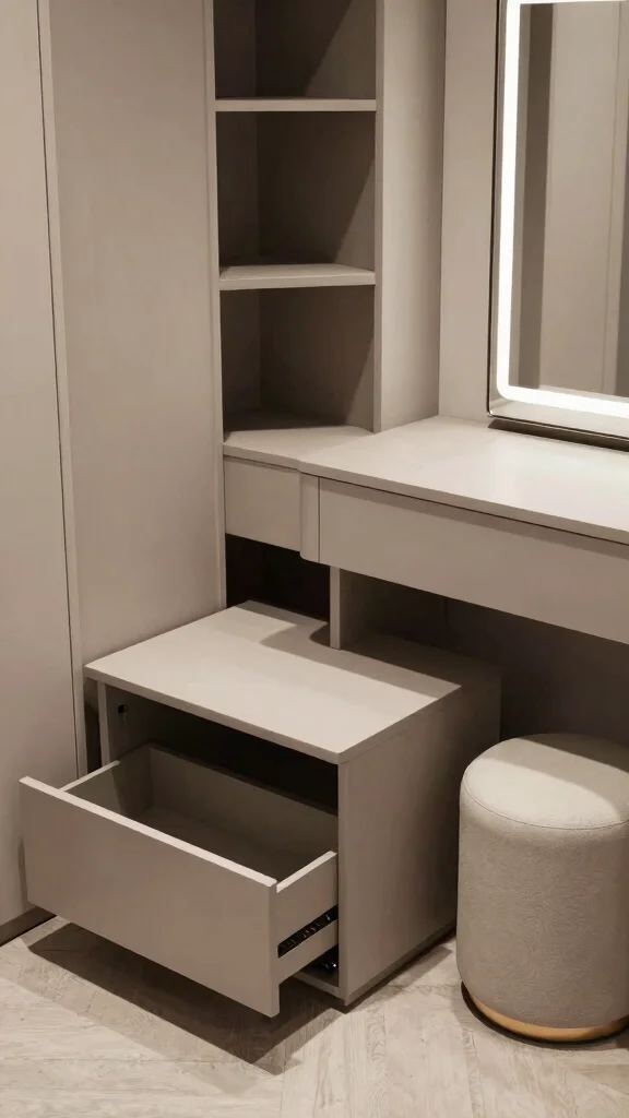 Versatile furniture allows for quick adjustments, transforming your dressing room for various needs, whether you’re prepping for a night out or enjoying a quiet moment.