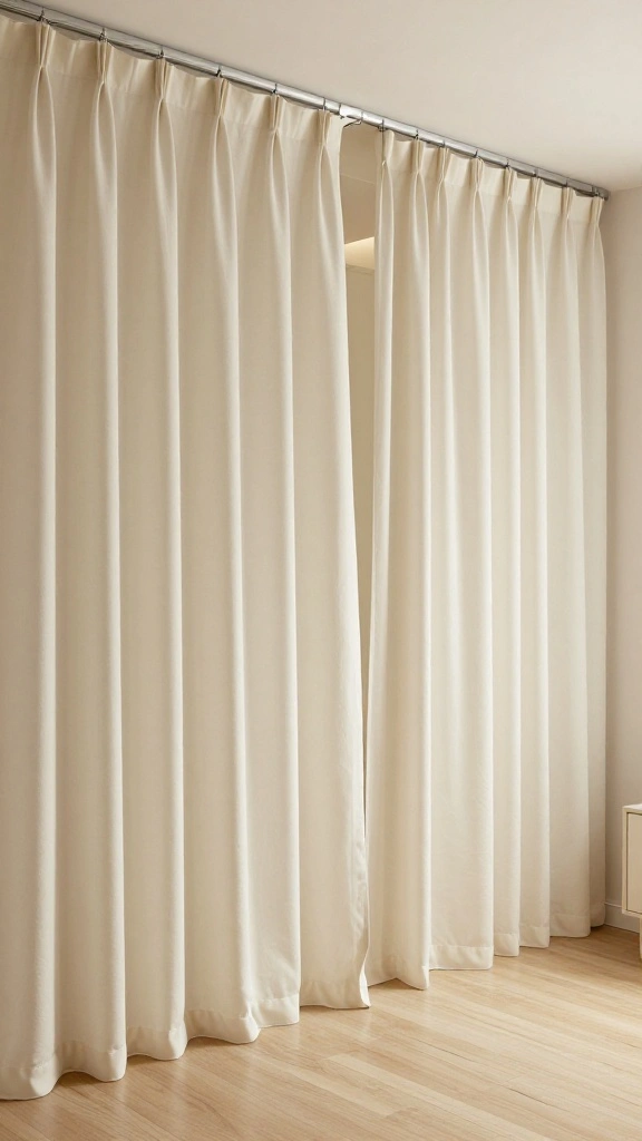 Curtains introduce soft textures that contrast with harder surfaces, adding warmth to the environment. Hang them from a ceiling track for a streamlined look, allowing for easy opening and closing.