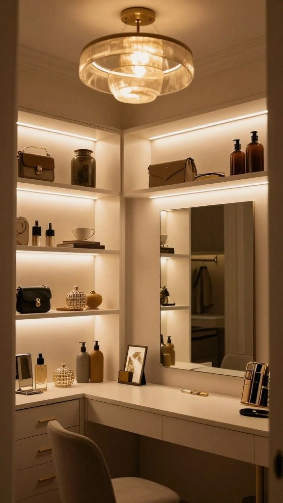 Automatic closet lights that activate upon opening doors provide convenience while minimizing clutter. Ensure your tech fits seamlessly with your decor, maintaining a chic aesthetic.