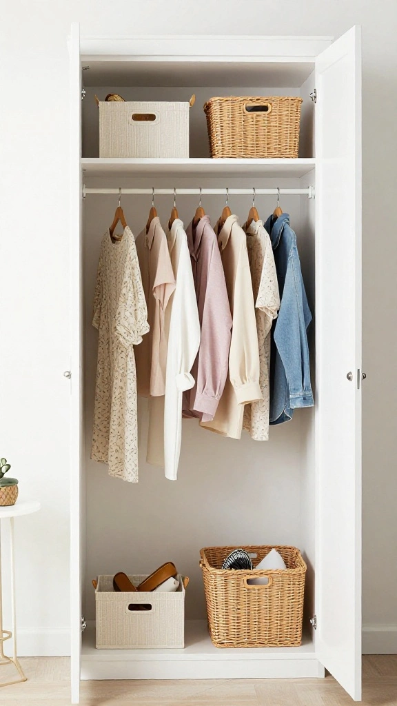 – Use matching hangers for visual cohesion.