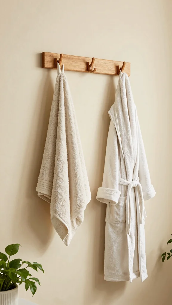 These hooks are ideal for hanging towels, robes, or accessories, keeping everything organized and within reach. The rich wood color adds warmth to your bathroom walls, fostering an inviting environment.