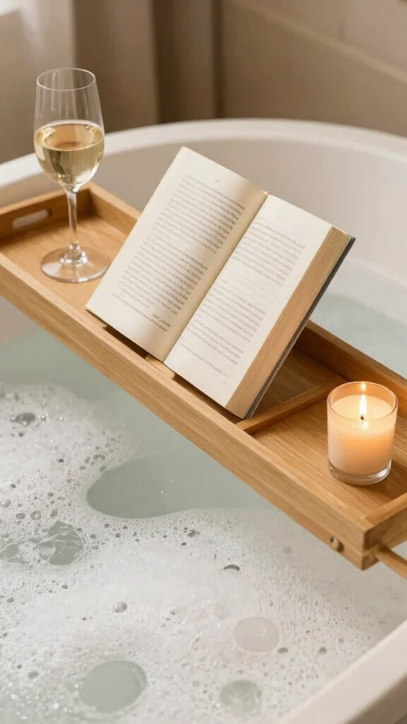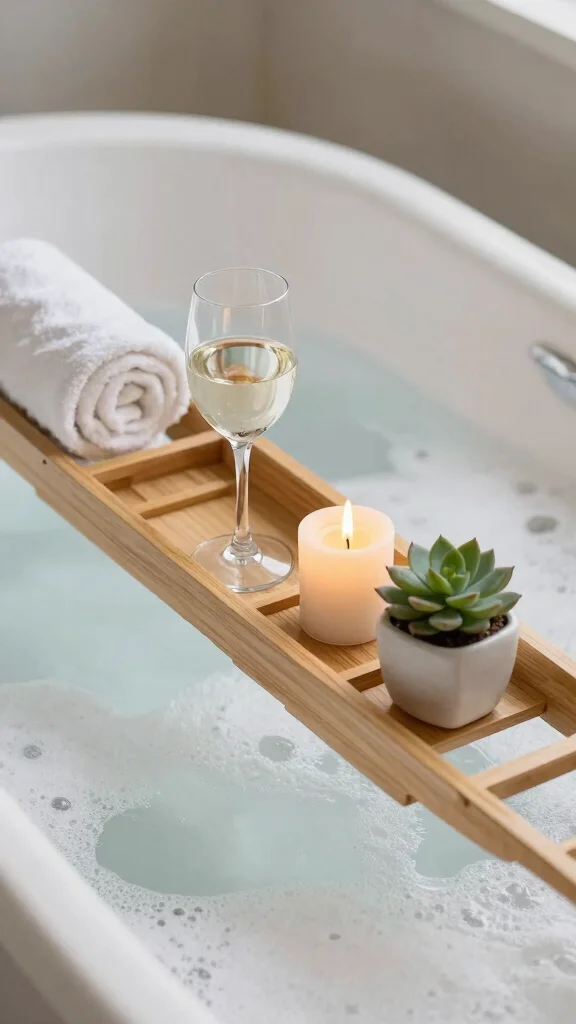 Personalize your bath tray with elements like a small potted plant or a soothing scented candle to maximize relaxation.