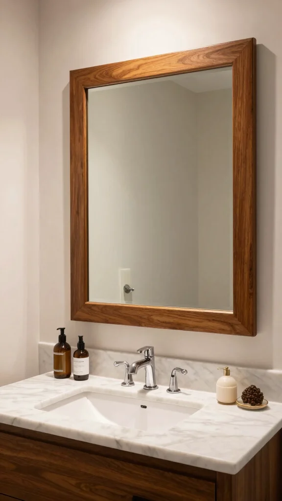 Enhance your space with a teak vanity mirror, which adds warmth and a touch of luxury to your bathroom.