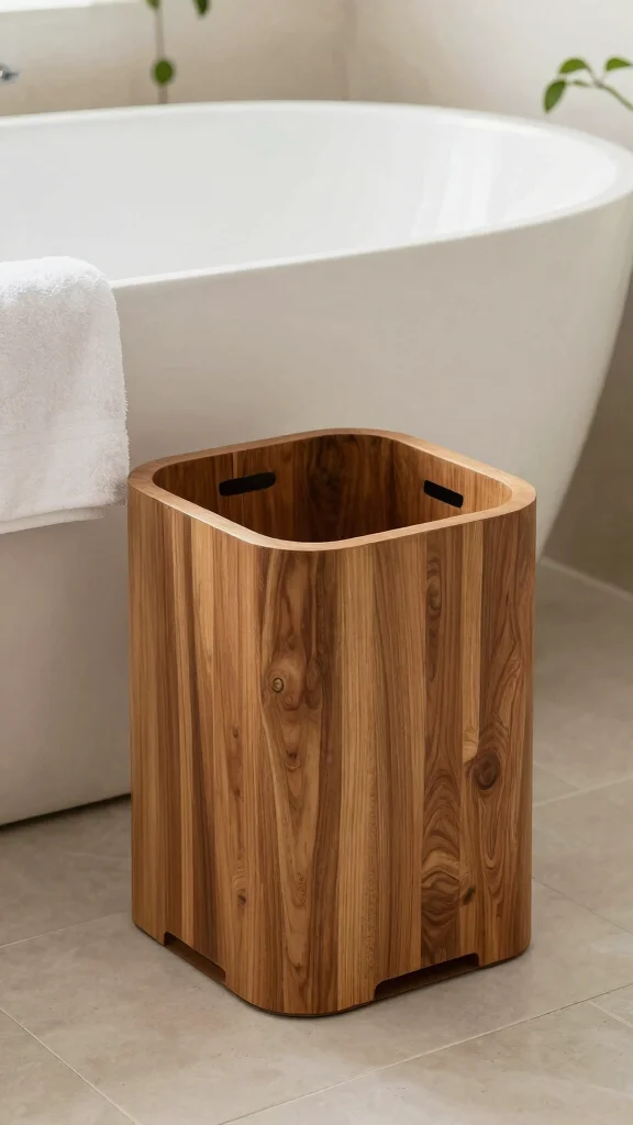 Keep your bathroom clean and stylish with a teak waste bin that adds a touch of sophistication.