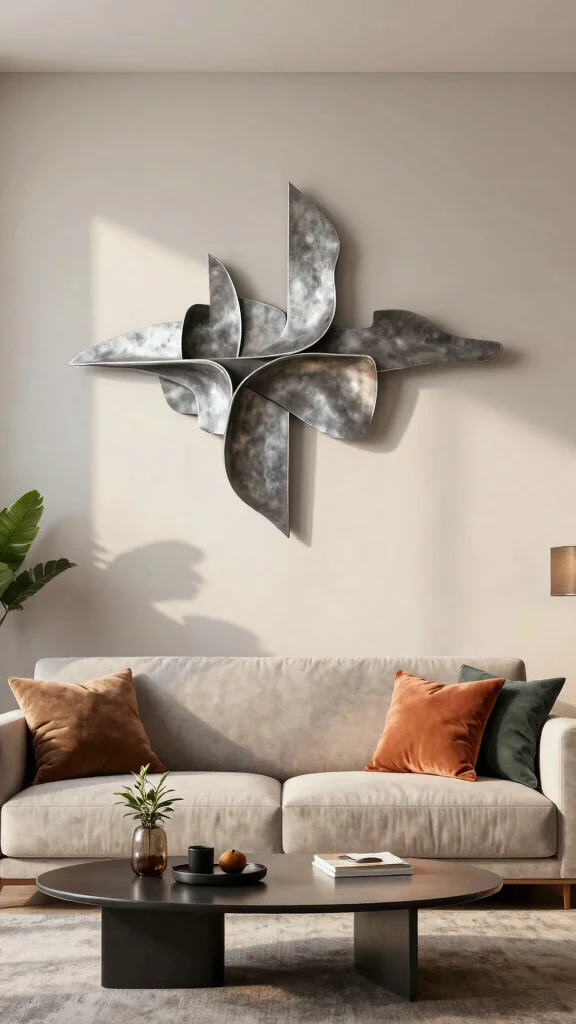 Abstract wall sculptures offer an exciting way to express your artistic side while enhancing your living room’s bohemian aesthetic.