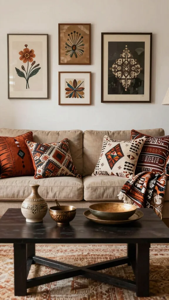 Choose textiles with vibrant colors and intricate patterns to create warmth and visual interest. Display ethnic art alongside your other decor to craft a cohesive narrative throughout your living space.