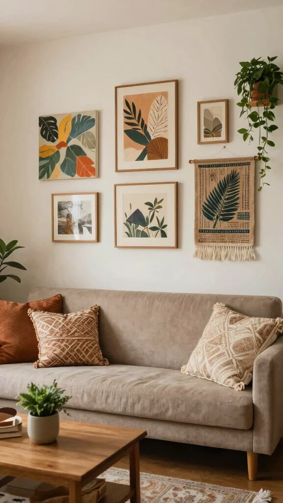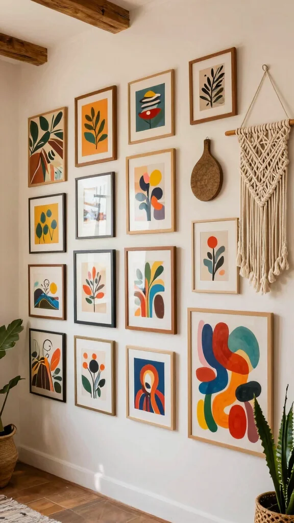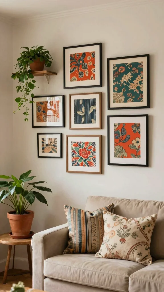 Create a vibrant gallery wall that showcases a mix of art styles and personal photographs, weaving a narrative that reflects your life. Incorporating framed images, textured textiles, and small sculptures adds depth and character, transforming your wall into a storytelling canvas. This eclectic approach allows for continuous evolution as your tastes change over time.