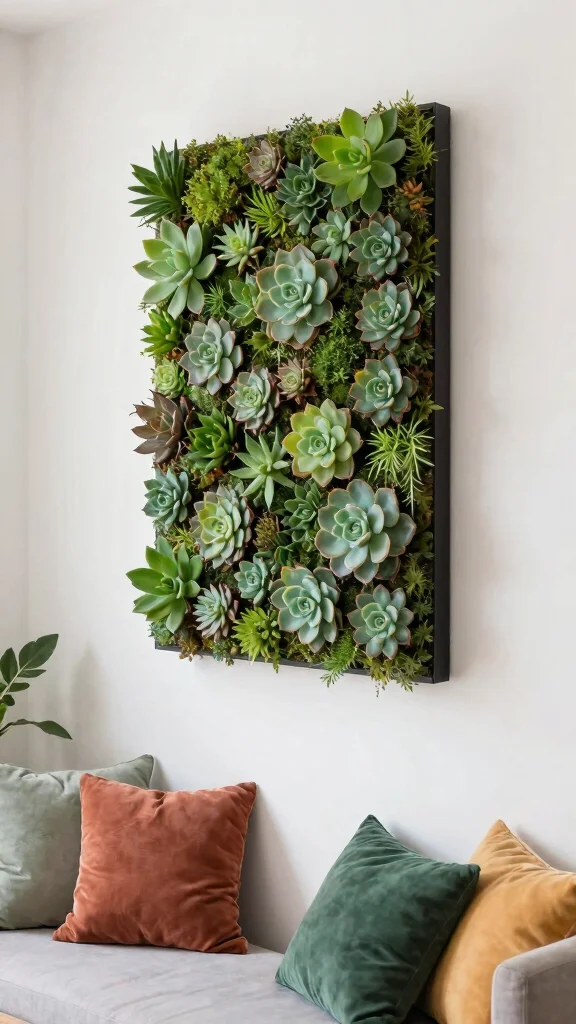 Introduce a touch of greenery into your living room with succulent wall art. These living pieces not only beautify your walls but also purify the air, bringing life to your decor. Consider creating a vertical garden display using small succulent pots or a framed arrangement of these hardy plants.