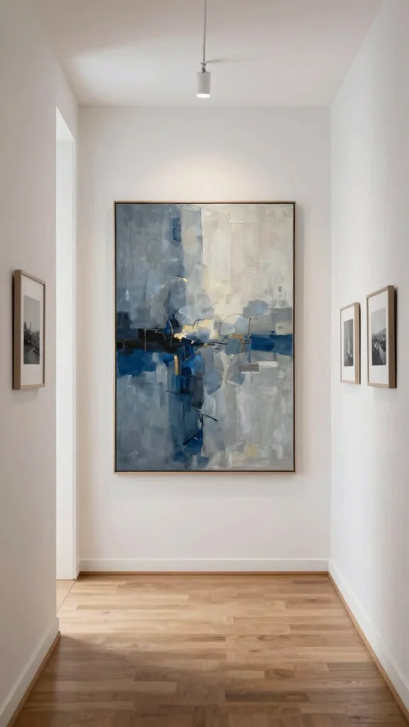 For small hallways, start with a focal wall and build your wall art hallway ideas around it. Choose a large statement piece paired with a few smaller accents to avoid clutter. Consider a vertical layout or a salon-style grid to maximize narrow spaces. Add lighting—like a wall sconce or picture light—to highlight the art and enhance hallway decor. Keep a cohesive color palette and choose frames with clean lines to maintain a calm, modern look, and mix in inspirational artwork to set the mood.