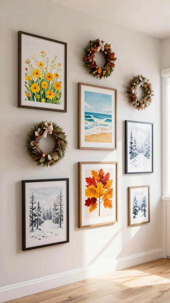 – Incorporate seasonal decor elements, like leaves or flowers, to surround your art.