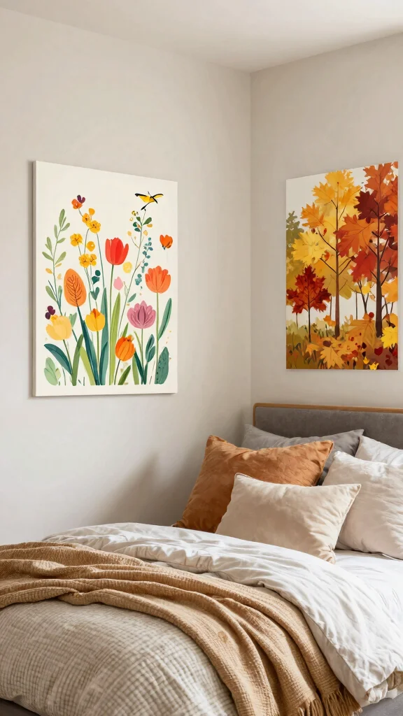 Creating a seasonal decor rotation for your bedroom wall art keeps your space fresh and inviting. This practice allows you to change your decor based on the seasons, contributing to a cozy ambiance that feels relevant. Opt for themes that reflect the time of year, like floral designs for spring or warm tones for autumn.