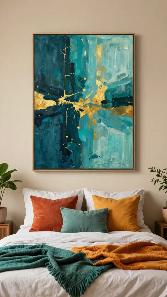 Bold colors in your wall art can invigorate your bedroom, transforming it into a lively retreat. Deep hues like teal, mustard yellow, or burnt orange evoke feelings of warmth and comfort, especially when paired with soft, neutral backgrounds. This striking contrast creates a perfect balance that enhances the overall ambiance.
