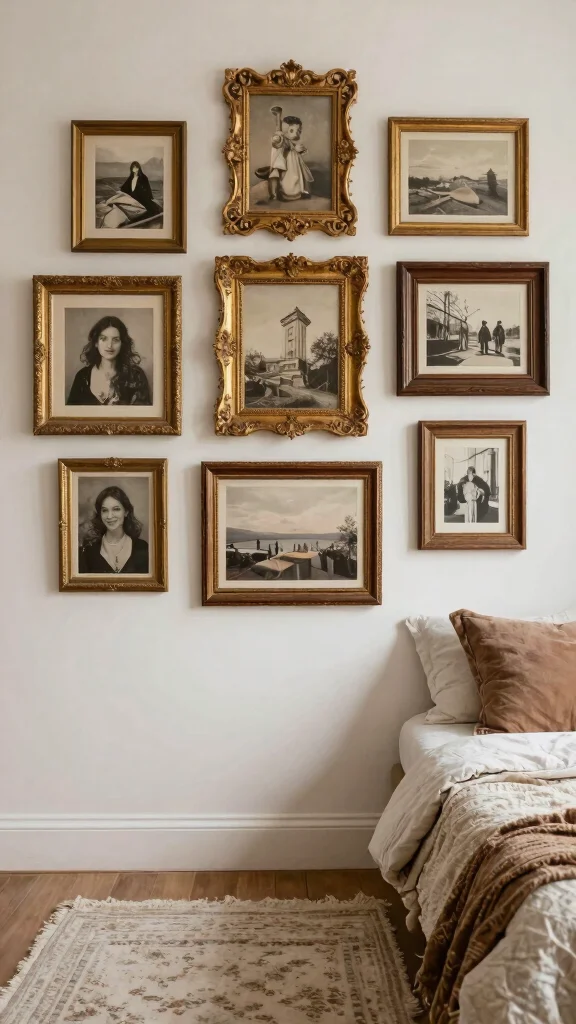 Create a vintage gallery wall with mismatched frames and eclectic art. Mixing photographs or postcards from different eras tells a visual story that adds depth and personality to your space.