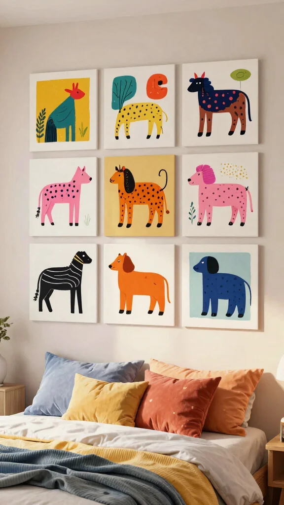 Adding whimsical art to your bedroom creates a joyful escape, establishing a cozy retreat from the everyday hustle.