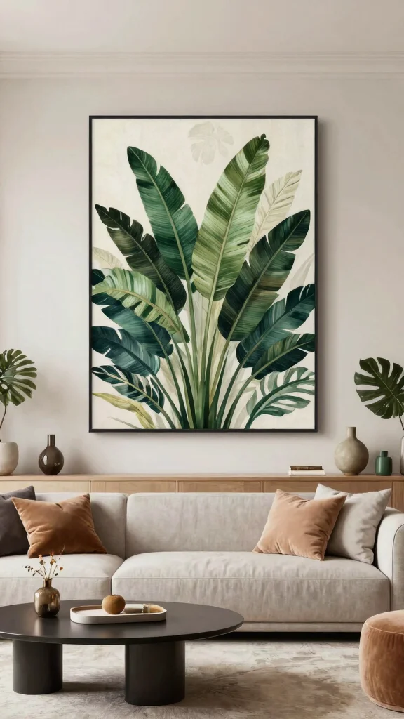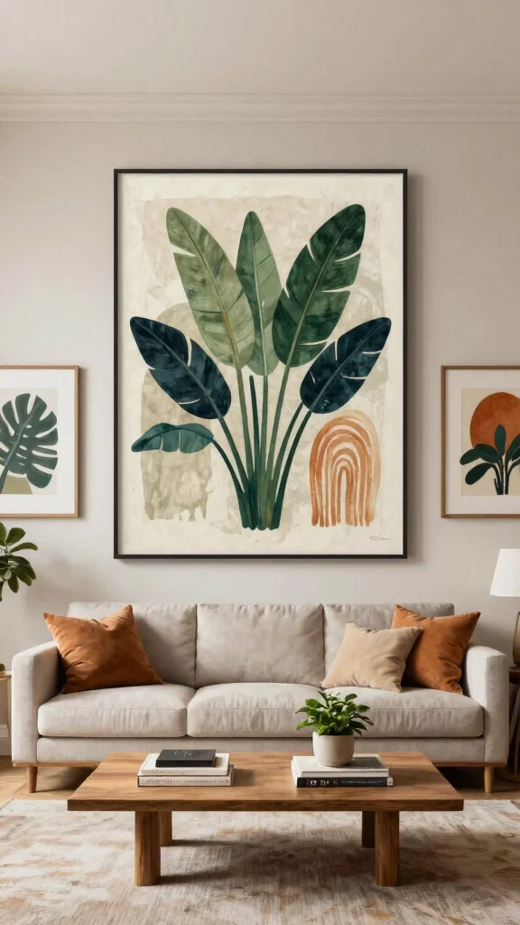 Start with your primary rule: the wall art size guide helps you pick standard dimensions that fit—think 8×10, 11×14, 16×20, or a bold 24×30 statement piece. For a sofa, aim for art that is about 60–75% of the sofa width; on a tall wall, a single larger piece often works better than a crowded collage. Hang art at eye level (roughly 57–60 inches from the floor) and leave 2–4 inches of space around the frame to let it breathe. If you’re creating a botanical gallery, leave consistent spacing (2–4 inches) between frames and consider a cohesive mat color to tie the pieces together. A quick room-friendly home decor tip: use a template on the floor or painter’s tape on the wall to visualize the layout before nailing anything in place. This is a simple part of your wall art dimensions and art sizing recommendations to get the perfect fit.